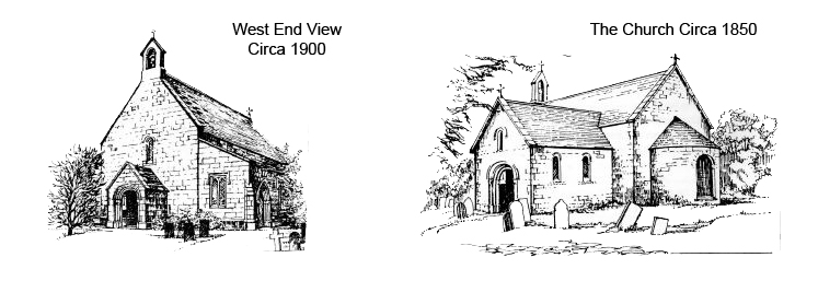 There was a gallery across the west end occupied by the Boys’ Sunday School (the girls were on benches down the middle of the stone-floored aisle). The men servants from Stainsby and the instrumental choir occupied the front seats. Two large pews under the gallery were usually occupied by the cottagers – the farmers’ men servants on the north and the women on the south. It is assumed that the gallery was demolished during the alterations made in the mid-19th century.